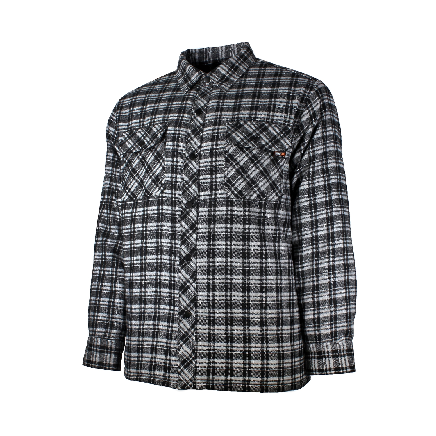 – Chemise en flanelle avec boutons pression – Doublée de nylon et micro polar piqué – Munie d’une poche raglan de chaque côté – Poches de poitrine à rabat.